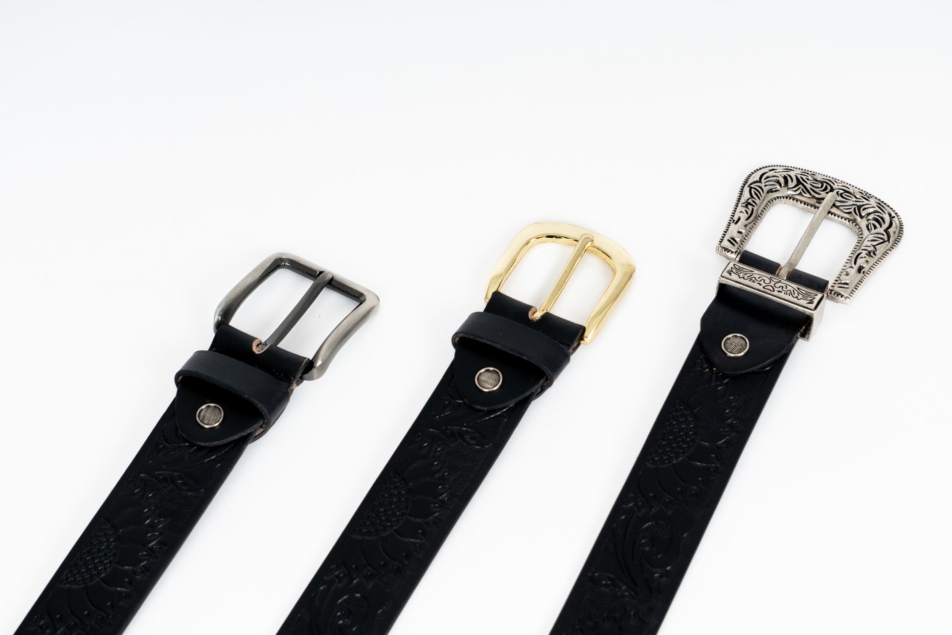 Black Sunflower Leather Belt – Hand-Tooled & Custom Made