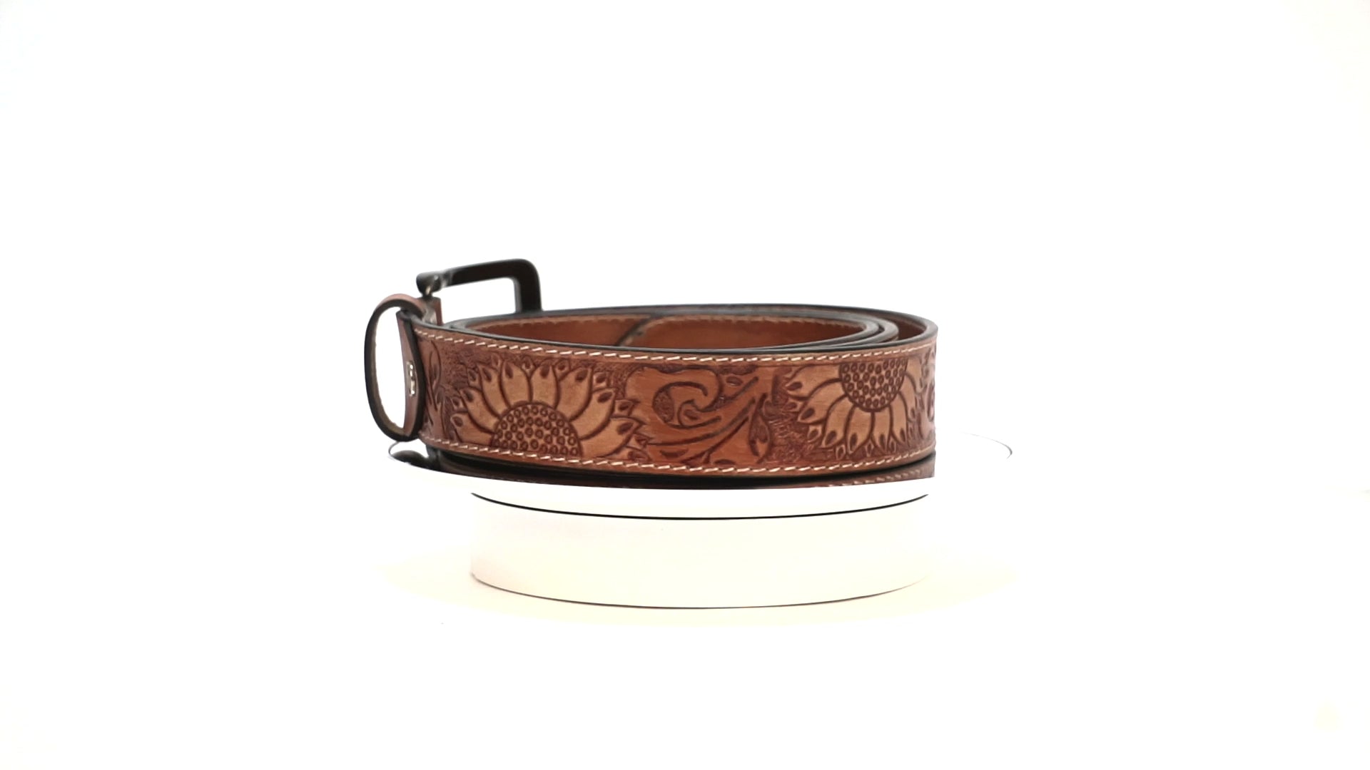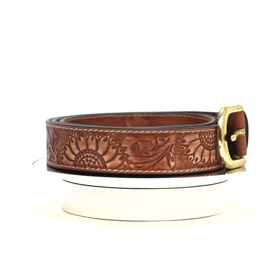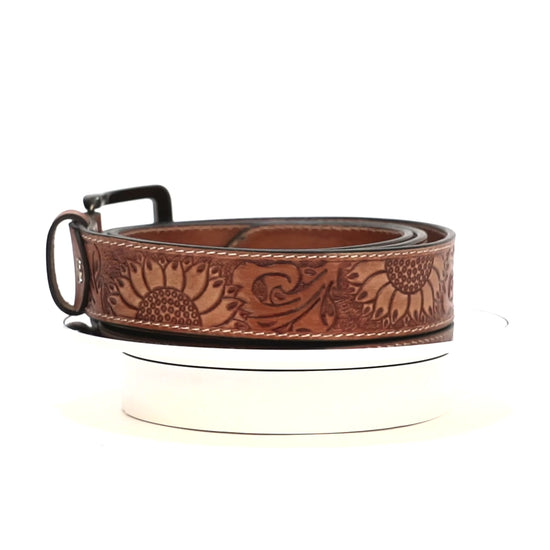 Western Sunflower Leather Belt – Hand-Tooled & Custom Made